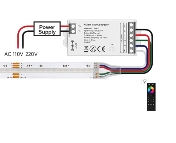 Potreben je krmilnik za naslovljive IC LED trakove WS2814 (12V), ki podpira RGB + belo barvo (RGB + 4000K).